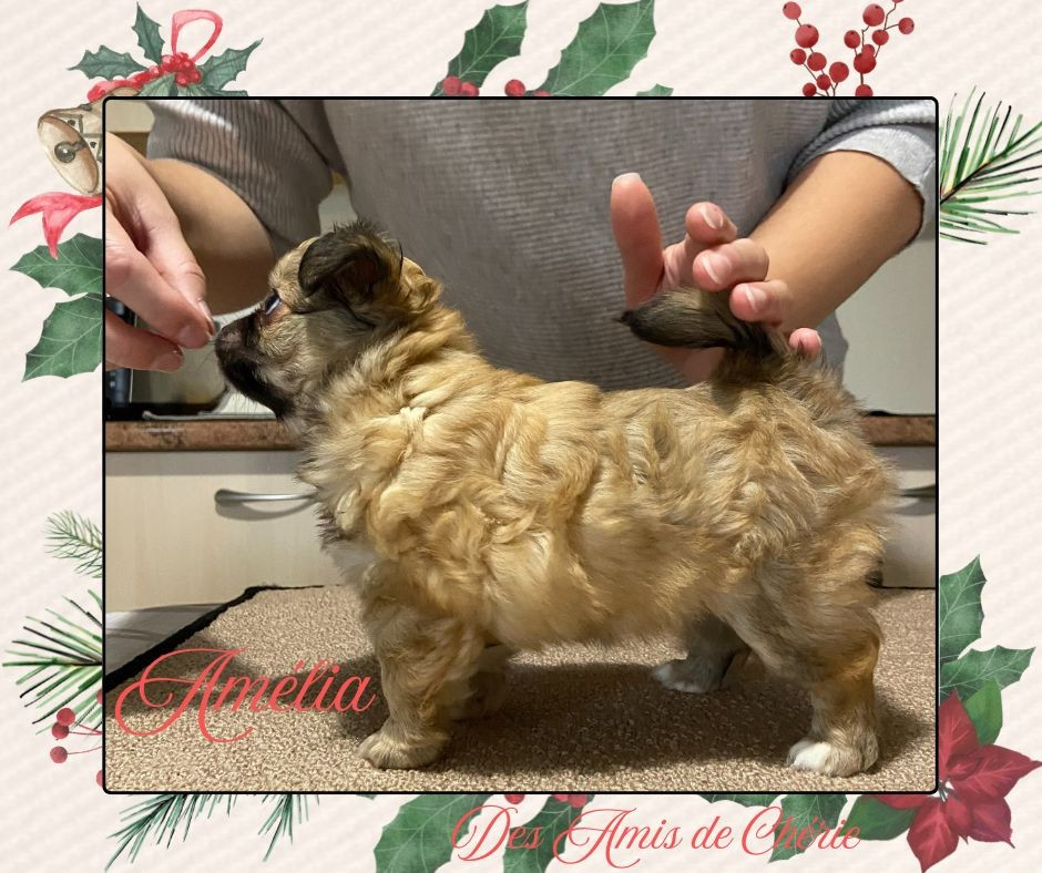 2 très jolies femelles nées par césarienne avec des poids de naissance de 164 et 170 grammes. Elles évoluent et grandissent très bien. Aimeline est diponible, sa soeur est en observation pour rester à l'élevage.   Les poupées sont issues d'une double-saillie: leur papa peut être Modo Di Vita Rêve du Monde (cotation 2) ou Tip Top Des Amis de Chérie (cotation 4). Verdict lors du résultat de la filiation par ADN dans 1 mois. Leur maman est côtée 4 au club de race. Tous les détails sont dans les fiches de chacun de mes chiens.